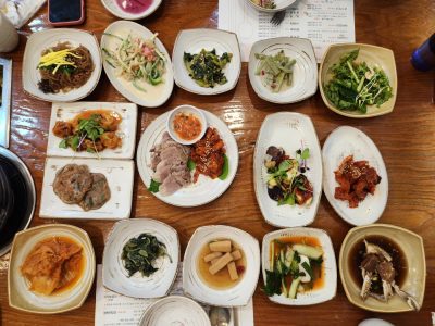 반찬이 다 나왔다. 메인 메뉴는 보쌈인데 다른 메뉴들도 다 맛있음.