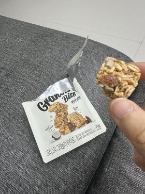 다 좋은데 가격이 너무 비쌈… 조그만 네모 큐브가 7개 정도 들어있는 듯 하다. 배고플때 먹으면 열받을 양 ㅠ 하지만 단 음식이 갑자기 땡겨서 입터짐 방어하는 목적으로 먹는다면 괜찮은 듯 하다. 실제로 나도 달달한게 땡길 때 이거 한 봉지 먹고 정신차림…. 다른 초가공식품보다는 나으니까….