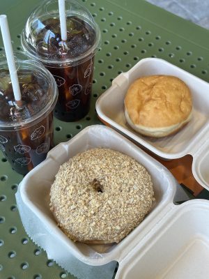 매장에서도 먹을 수 있지만 밖에 날씨가 너무 좋아서 야외 테이블에 앉아서 먹었다. 커피는 내 취향이 아니었음. ‘브루잉 커피’ 단일 메뉴 뿐이었다. 커피랑 도넛 먹고 싶었는데 이날따라 내 취향에 안 맞는 커피 계속 마시게 되어 슬펐음…..