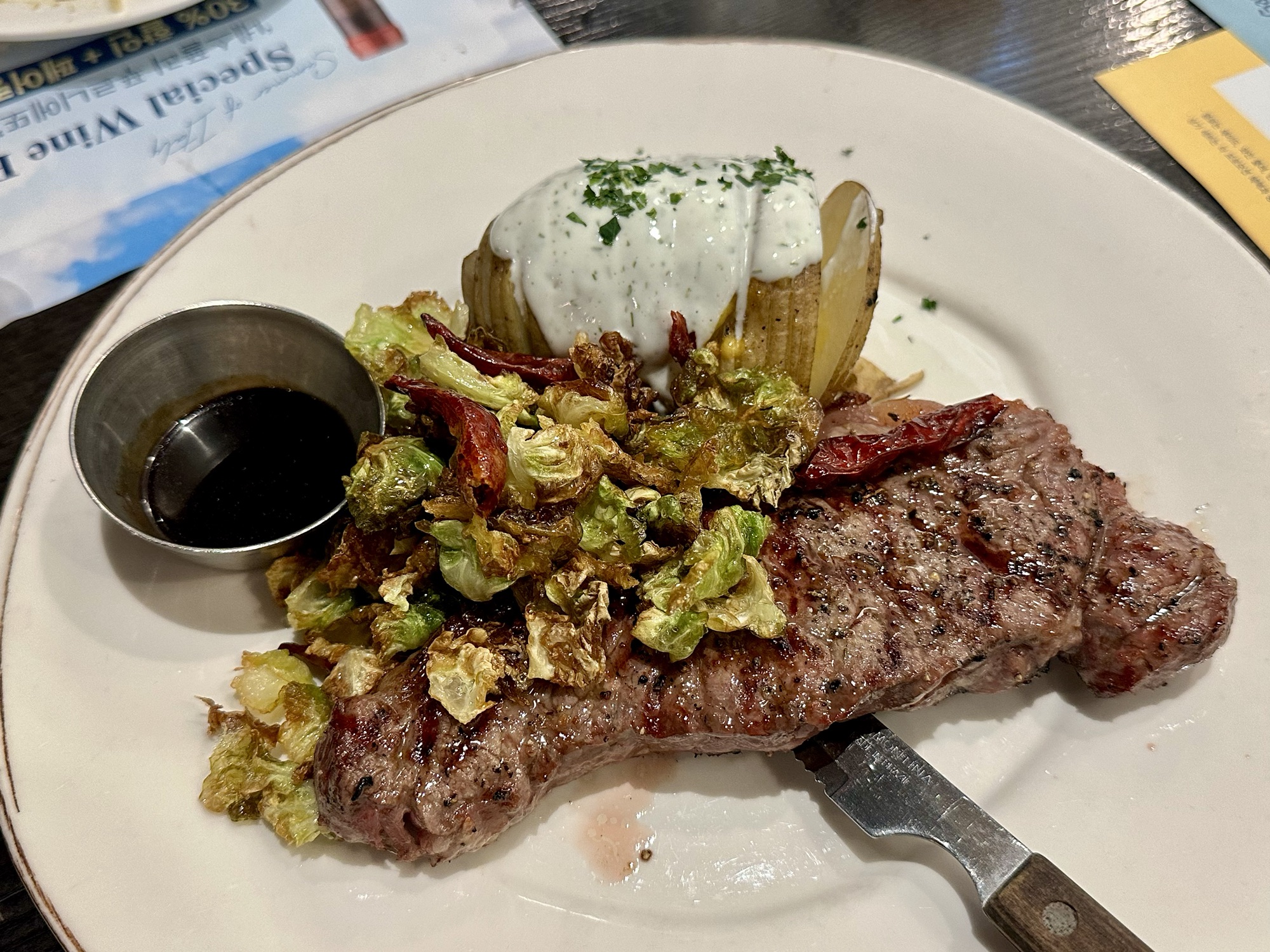 호주산 채끝등심 위에 달콤하게 튀겨진 듯한 미니 양배추가 올라가 있다. 이게 별미! 너무 맛있어서 어떻게 하면 이 맛을 낼 수 있을까 고민하며 계속 먹었다ㅋㅋㅋㅋ 스테이크보다 미니 양배추가 더 기억에 남다니…