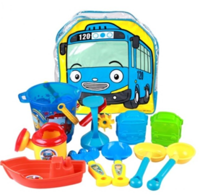 구성 : 타요 빅 가방, 양동이, 모양틀 2개, 삽, 포크, 모래채, 원형삽, 물조리개, 덤프트럭, 빅사이즈 보트