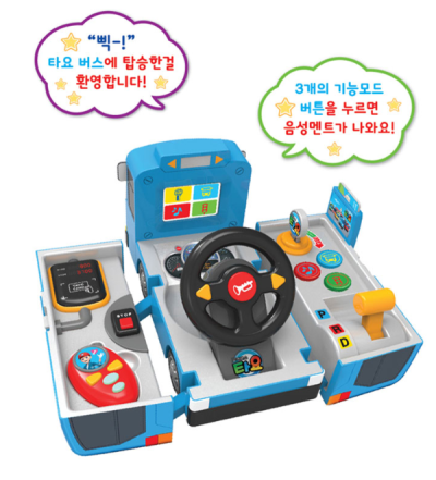 구성품 : 타요 변신 운전놀이 본체 1, 자동차 키 1, 휴대폰 1, 버스카드 1